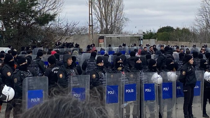 Pankartları ve sloganlarla yürüyüşe geçen çalışanlara çevik kuvvet grupları pürüz oldu. Emekçilerin aksiyonu öncesinde Beykoz Kaymakamlığının 1 günlük “eylem yasağı” kararı aldığı öğrenildi.